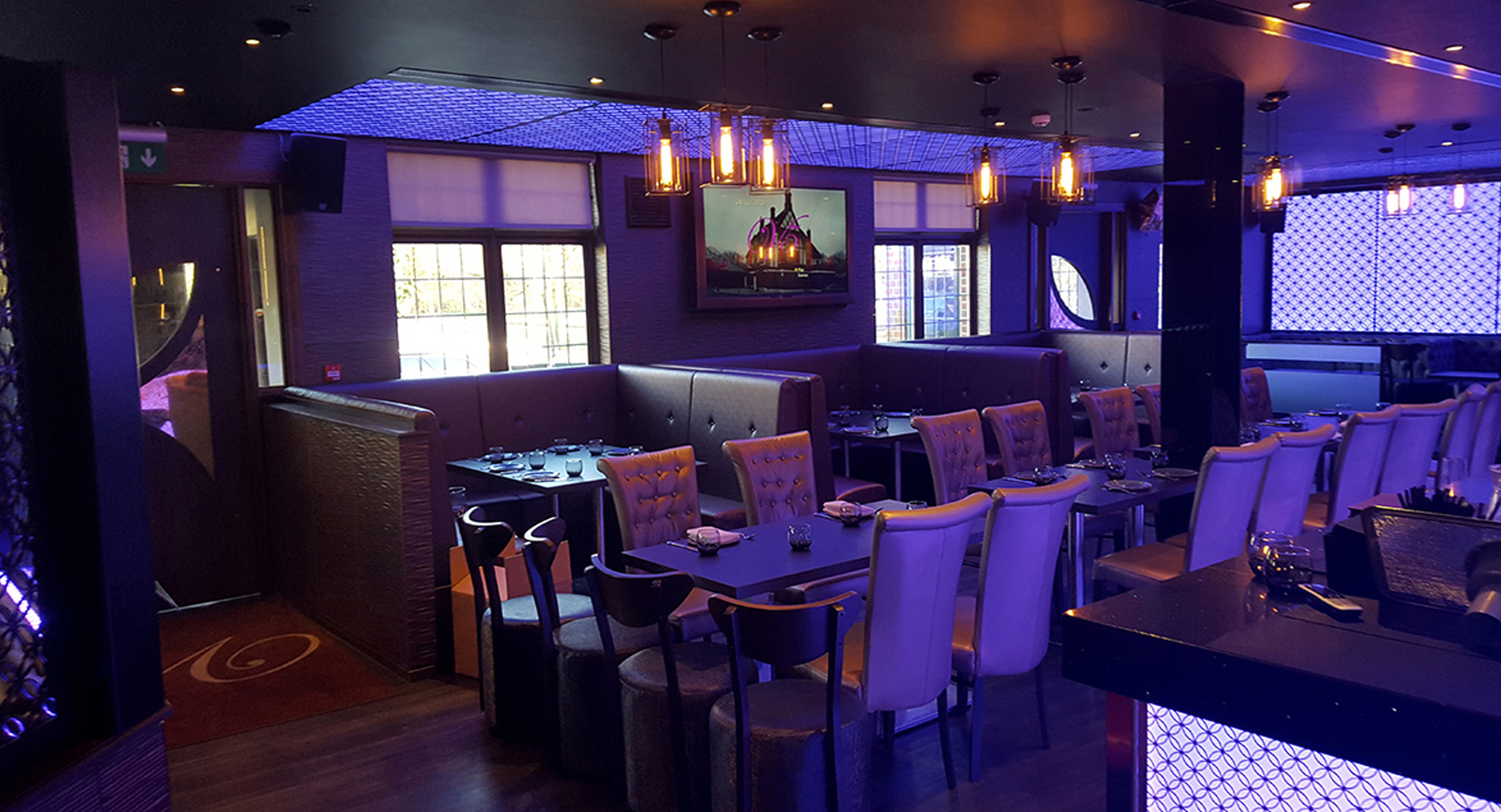 Namaste Lounge, Northwood - Restaurant, Bar and Lounge, 2014. Detailed visuals and \\\'walk throughs\\\' prepared and all materials and colours selected.